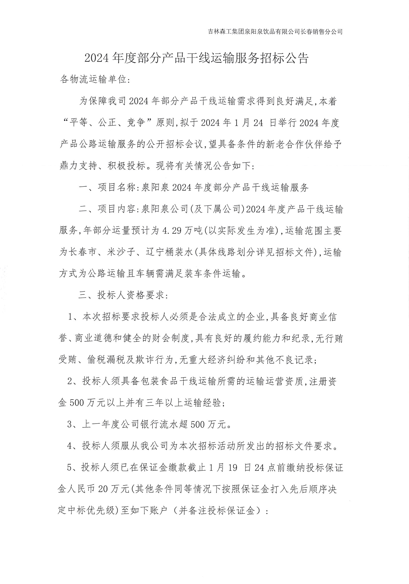 2024年度部分產品干線運輸服務招標公告